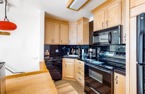 Experience ski-in/ski-out access to the slopes of Bald Mountain at this three-level condo nestled at the base of Warm Springs. The lifts are waiting right out back, and they can even be viewed from any of the condo's windows! After a thrilling day of skiing, hiking, mountain biking, or fishing, you'll come home to a heated community pool (open seasonally) where you can relax those tired bones.