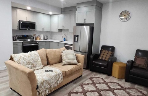 Welcome to your brand new and modern family-friendly getaway in the heart of West Edmonton! This bright 2-bedroom basement suite features a private entrance, full kitchen, in-suite laundry, and free parking. Whether you're here for a family vacation, a business trip, or a shopping weekend at West Edmonton Mall (just minutes away!), you'll love the comfort, space, and convenience our suite offers.