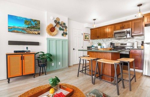 Unwind in the bedroom with a king bed or relax in the bathroom with a tub and shower combo after a day of exploring the island. The fully equipped kitchen is perfect for whipping up delicious meals and the 40'' smart TV in the living room is great for family movie nights. Need extra sleeping space? No problem, there's a pull-out sleeper sofa for your convenience. And the best part? Free parking is included, so you can spend less time worrying about where to park and more time enjoying the beautiful surroundings of Waikiki.