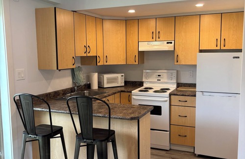In the desirable Maplewood area, this ground level 1 bedroom suite is located on a quiet, cul-de-sac. A Queen in the Master and a hide-a-bed in the living room plus pack n play upon request.