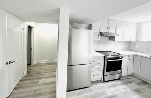 A Beautiful Ground Level Apartment with a Private Entrance and Lovely Views! The space is Newly Built and Furnished to Provide our Guests with the Best Experience in Comfort and Class. It is a Bright, Open-concept Suite Providing so much Natural Light. Enjoy the Cozy Living Room with a Chrome Cast TV, 2 Spacious Bedrooms, and a Sparkling Kitchen Fully Equipped with Brand New Stainless Steel Appliances and Gorgeous Quartz Countertop, Backsplash and Tiles! You can’t ignore the Stunning View of the Ravine Water Right Outside the Front Door. A Full Bathroom with Ensuite Laundry is also Provided for your Convenience.