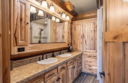 Upstairs you’ll find 2 more private bedrooms each with a queen bed and sky lights, laundry chute and a private bath with double sinks and a walk in shower. There is also a sitting room located upstairs. Each room of the house is on a separate furnace so the downstairs temps can be different from upstairs. Entire Home is air conditioned and heated, also has electric remote controlled blinds and ceiling fans. Home has high speed wireless internet and every Tv is a smart Tv and connected to the DISH Network.