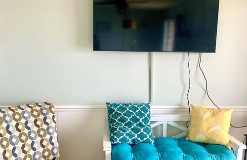 The seashore is less than 3 minutes away. You have a full working kitchen with bar stools at the granite kitchen counter or a large kitchen table overlooking the canal. Kitchen has everything you need if you want to cook. Plates, pots, pans, silverware, bowls etc. Some spices and olive oil are provided. I also provide foil, saran wrap and baggies. Or there are plenty of restaurants (Boathouse Grill next door) just a few blocks away for a no cooking getaway. Master bedroom has a comfortable queen mattress, new dresser, large closet and nice big chair for the reading nook. The living room has a queen pull out sofa for 2 more guests and a brand new 55" TV. Towels and linens provided. Golf cart rental right around the corner.