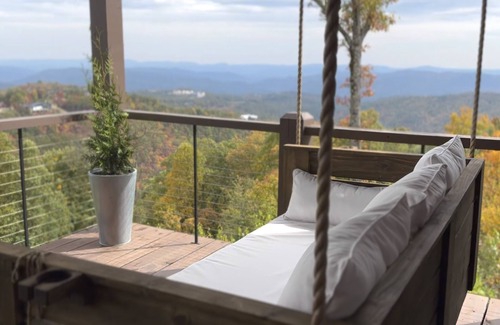 Inside the Blueridge Mountain Club, our adults only, rotating holiday theme retreat is reminiscent of the incredible cocktail cabaret. Enjoy the fireplace and 2 balconies with built in grill, outdoor dining table and seating to enjoy the long range views. 2 bedrooms, 2 bathrooms & full kitchen. Nespresso coffee station. Community has miles of hiking/UTV trails, waterfalls, its own restaurant, pool and fitness center.