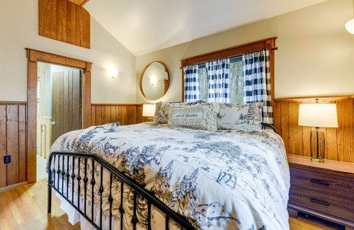 Nestled in the towering trees and scenic vistas of the Great Smoky Mountains, this 1-bed, 1-bath cabin immerses you in a serene setting of tranquility. This charming vacation rental has it all: a private hot tub, cozy fireplace, and an unbeatable location. When you're ready for adventure, take advantage of the on-site resort amenities at Nantahala Village Resort, head out to explore the shops and breweries of downtown Bryson City, or go whitewater rafting at the nearby Nantahala Outdoor Center.