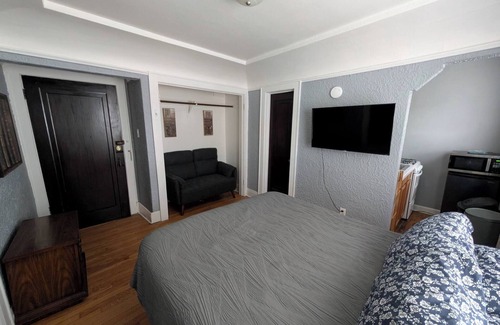 This room comes with a small couch, queen bed and a smart TV. The bed includes fresh linens. Upon arrival, there will be 2 sets of towels and washcloths laid out for each guest.