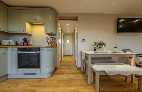 Inside, the comfortable living area holds the sitting room, dining space and kitchen; all carefully designed to provide guests with an optimal holiday experience. Curl up on the large, cosy sofa in front of the roaring wood burning stove, and nestle in after a thrilling day of exploring. Two bedrooms have been appointed to a high standard with supremely comfortable beds and quality linens. A good night's sleep is assured! The master bedroom is located on the ground floor and offers ample storage and a Smart television. Across the corridor, the beautifully decorated bathroom features a large roll-top bath and separate rainfall shower. A twin bedroom is located at the top of the spiral staircase on the first floor. Please note, this is not suitable for those with mobility concerns. Outside, guests will enjoy the generous grounds, all of which are enclosed and private. Here you will find the outdoor dining area, complete with charcoal barbecue, fire pit and seating.