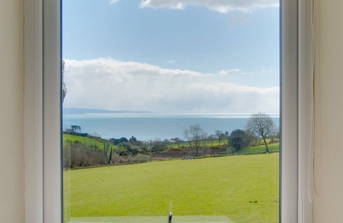 Outside : Private slate terrace with garden furniture, dining table and sea and country views. Lawned garden area, all enclosed, child and pet friendly.