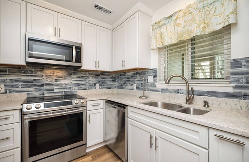 Every detail has been thoughtfully chosen—from the tasteful décor to the brand-new, ultra-comfortable mattresses (purchased in 2025) ensuring restful sleep after a day in the sun. The condo comfortably sleeps up to 7 guests with a spacious king bedroom, a cozy queen room and a fun twin-over-full bunk setup perfect for kids or extra guests.