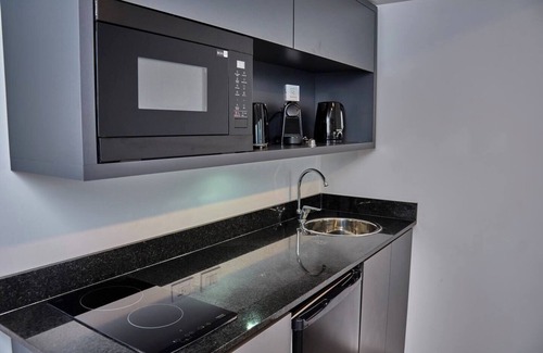 Air conditioning and a desk are featured at this 1-bedroom, 1-bathroom rental. Connect to the WiFi, or get cozy in front of the TV. Bathroom amenities include a hair dryer, a bidet, and towels. Be sure to check out the kitchenette, stocked with a coffee maker, a microwave, and cookware. Other amenities include bed sheets and heating.