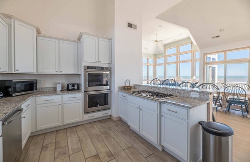 The open floor plan of the kitchen and living area creates a seamless flow for cooking, dining, and relaxing together. Prepare delicious meals in the fully-equipped kitchen, complete with modern appliances and ample space for culinary adventures. The spacious bedrooms, including luxurious king suites and cozy bunk rooms, provide comfortable accommodations for all guests. "Bye D Sea" is equipped with amenities to entertain and delight guests of all ages, including but not limited to a Pool Table and ample TVs. Enjoy movie nights in the great room, gather for meals in the dining area with floor-to-ceiling ocean views, or relax in the lofted sitting area as the sun sets over the sound.
