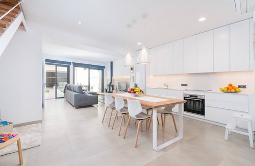You will spend unforgettable moments at the terrace of this beautiful two-storey house. No doubt, the terrace is an amazing place to enjoy a delicious breakfast or barbecues whenever you want and the chlorine pool will be your private paradise within the property. The turquoise water is surrounded by a well cared, delicate and charming atmosphere. It sizes 5 x 2.5 metres and the water depth ranges from 1.2 to 1.8 metres. Next to the pool, there also is an exterior shower to cool down after basking in the sun on one of the 4 sun loungers, or after exercising at the gym that you will find at the end of the exterior staircase. Inside, you will be welcomed by a large room that goes from side to side of the house and unifies the kitchen with the dining and the living room. It offers a fireplace, air-conditioning and it's perfect to spend your time all together since you can cook on the ceramic hob while you set the table, watch TV, listen to some music or rest on the sofa. The bedrooms are on the first floor, all of them with AC. The first bedroom has a double bed, an en-suite bathroom with a shower, a walk-in closet and room for a baby cot -a high-chair also can be provided-. The other two bedrooms feature twin beds and both have a clothes rack. There are two more shower bathrooms in the house, one on each floor. The laundry room is independent and it has a washing machine, iron and ironing board. The house is located in the town of sa Pobla where you can have a walk and visit the town square full of bars, restaurants and shops. Its traditional street market with local fresh fruits and vegetables takes place on Sunday mornings. You will find a bus stop about 650 metres away and the train station about 1 km away. The nearest beach is the one of Can Picafort about 12.3 km away. Its white sand and crystal-clear water are amazing. And if you feel like playing golf, the nearest course is the one of Pollensa, less than 10 km away. Consult the advertiser for possible charges. Pets are not allowed. The holding of events is forbidden. Distances Beach: 12.3 km - Ca'n Picafort Airport: 48.7 km - Son Sant Joan Golf course: 9.8 km - Golf Pollença Town: 0.01 km - Sa Pobla Train station: 1 km - Sa Pobla Bus stop: 0.65 km - Sa Pobla Ferry: 12.6 km - Port d'Alcúdia Hospital: 13.8 km - Hospital Comarcal d'Inca Tourist license: ETV/13020Single Rental Registry: ESFCTU0000070300003397800000000000000000000ETV/130204There's a mandatory tourist tax in Balearic Islands, called Ecotasa. All guests, except people under 16 years, have to pay this tax. The amount varies between 0.55€/night and guest during the low season and 2.2€/night and guest during the high season .The tax is reduced by half from the 9th day for your stay.