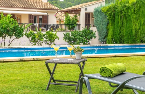 Outside, the fabulous pool and garden -with loungers for sunbathing- ensure total enjoyment of the good weather on the island. The salt water pool measures 9 x 4.5 while the depth ranges between 1.1 and 1.9 meters. Next to it we find the furnished porch that features the barbecue area. The property is fenced and there are neighbours nearby. The house is located on the first floor of the building. It offers a wonderful terrace overlooking the pool and the mountains and it's furnished in order to enjoy your meals and dinners with the family. Inside, you find a cosy living room with satellite TV and air conditioning. Next to it you find the dining area. The separate kitchen -also with AC- is equipped with a ceramic hob and also offers a table with chairs in case you prefer to eat there. There is also a laundry room with a washing machine, iron and ironing board. The house offers 3 bedrooms, all of them with AC: 1 with twin beds, aand two with a double bed, one of them with an en suite bathroom with a bathtub. There is another bathroom with a bathtub for the rest of the house. Finally, the house is equipped with oil central heating and there is also a cot and a high chair in case you travel with your baby. The property is located in Selva, a pretty village at the foot of the Tramuntana mountain range. It is the ideal starting point to get to know the island since the nearest beach, Puerto de Alcudia, is only 23 km away. The town offers all the necessary services for an independent stay such as supermarkets, bars and restaurants. The weekly market takes place on Wednesdays and there you can buy local and seasonal products. The nearest golf course is the Pollensa Golf course, located 21 km from the property. The fireplace is decorative. The property caretakers live on the ground floor. The upper floor is closed. Consult the advertiser for possible charges. Pets are not allowed. The holding of events is forbidden. There is exterior parking for 3 cars. Distances Beach: 23 km - Port d'Alcúdia Airport: 40 km - Son Sant Joan Golf course: 21 km - Pollença Golf Town: 0.800 km - Selva Train station: 8 km - Inca Bus stop: 1 km - Selva Ferry: 25 km - Port d'Alcúdia Hospital: 9 km - Hospital Comarcal d'Inca Tourist license: ETV/11214There's a mandatory tourist tax in Balearic Islands, called Ecotasa. All guests, except people under 16 years, have to pay this tax. The amount varies between 0.55€/night and guest during the low season and 2.2€/night and guest during the high season .The tax is reduced by half from the 9th day for your stay.