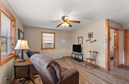 1 bedroom plus sleeper sofa in living room and kitchenette. Access to fish cleaning station, boat (ample parking) charging available upon request. Community firepit. Ask about adjoining cabin for groups. This is a group of 10 cabins\duplex. Fantastic place for reunions/large groups!