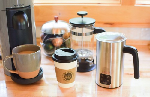 + Kitchen. The kitchen is well stocked with everything you need for baking your morning muffins to preparing evening meals. The kitchen is equipped with oven, range, microwave and dishwasher. For your peaceful morning coffee on the deck, we've got you covered with a Nespresso single-serve coffee maker, milk frother, and French press. There is also a tea kettle and selection of teas.