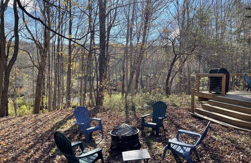We have Balderdash, Monopoly, Pictionary, Uno, playing cards and Poker for you high rollers. Off the dining area there is a large deck with views of the river and adirondack chairs for lounging. And finally you will find a firepit at the back of the house to enjoy those smores!