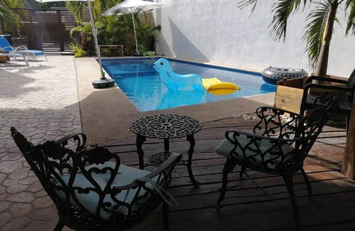 Yes, this Puerto Morelos cabin has a swimming pool. Check the Facility Overview section for details about the pool and other available facilities.