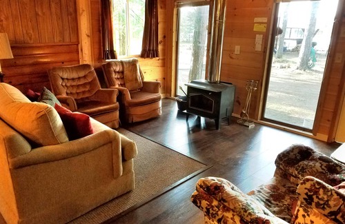 One of two roomy cabins located in beautiful Northern Wisconsin. Cabins have comfortable beds made with fresh linen (1 king and 2 queens). Towels are provided and the kitchen has plates, utensils, cups, pots, pans, coffee maker, toaster, small microwave, full size refrigerator and a small gas stove and oven. Enjoy the wood burning stove or the fire pit to unwind under the tall pines. Charcoal grill is also included. Enjoy pristine canoeing and kayaking on the Manitowish River surrounded by untouched state land. We're located at the mouth of 339 acre Fishtrap Lake, which also connects to High Lake with 741 acres. Cabins include a 14' aluminum rowboat and use of a canoe and kayaks. Outboard motors can be rented in town and it's best to reserve one in advance. Don’t forget your bike because there are over 40 miles of beautiful paved bike trails nearby. Our home is also on the property and we're available anytime for assistance.