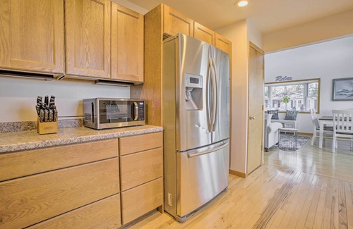 Explore trails, cast a line, or take a dip in the lake, and make this Cadillac vacation rental your launching point for family fun! The 3-bedroom, 2-bathroom home, located just minutes from public access to Lake Mitchell, has everything you need for an epic Michigan experience. Find yourself soaking in the hot tub, roasting marshmallows by the fire, or simply kicking back on the deck to watch the sunset. Looking for even more fun? Head to Adventure Island, less than 5 miles away, for mini-golf!