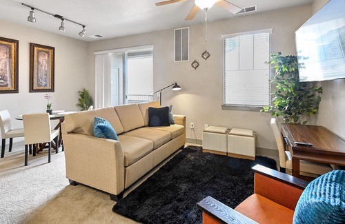 ★ Cal-King Suite ★ Fantastic View ★ Pool, Gym, Spa/Hot-Tub ★ Leisure or Business has 1 Bedroom , 1 Bathroom, and max occupancy of 3 people. The minimum rental for this property is 1 nights, but this can change depending on the season you plan on staying. Previous guests have given good rated it, and VRBO labeled it a top-rated Apartment because of the excellent services rendered by the owner or manager of this Apartment, and has consistently provided great experiences for their guests. Most families or guests that use it recommend it to their friends and some of them are repeat guests. Apartment has a friendly neighborhood, and the South Jordan has interesting places to visit. If you want to learn more about the Apartment in South Jordan, such as places to visit and things to do nearby, you can check below to learn more.