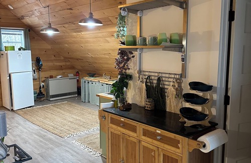 We have a studio space that is on a gorgeous piece of property- directly on Lake Champlain on Maquam Shore. It is newly renovated space, designed for travelers. Please note- the second bed is on a loft - whomever sleeps in that area would need to climb a ladder. Kids love it but use at own risk