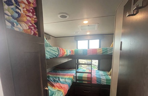 Camp Coco RV is a top-of-the-line RV designed and furnished with your family in mind. With spacious bedrooms, two bathrooms, and fully stocked gadgets (inside and out)...you can pack light knowing we have you covered!