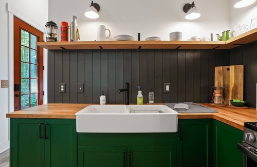Experience beauty inside and out at Camp Emerson. This modern cabin is part of Wilder's beautiful 40 acres and is situated privately among the 10 total cabins on the Wilder Property. You will be nestled amongst the trees of our private woods, which is lined with hiking trails. It features a hot tub, king bed with luxury bedding, coffee/tea bar, and selection of board games. Come unwind, disconnect from distractions, and reconnect to what matters in the stillness and beauty of the wilderness. Must be 21 years or older to rent. Open Parking lot for all 10 cabins on site. Please note that parking is not available directly in front of your cabin. Wagon is provided to assist with luggage. 4WD/AWD is recommended in all seasons. No WiFi available.