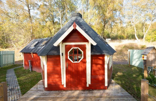 Bearnock, Loch Ness 10 km from Drumnadrochit: Modern, comfortable chalet "Campbell", detached, built in 2023. 9 houses in the resort. In a quiet position, 5 m from the river. In the house: central heating system. Parking. Shop 10 km, grocery 10 km, supermarket 10 km, restaurant 3 km, bicycle rental 6 km, bus stop 400 m, railway station "Inverness" 35 km. Golf course (18 hole) 30 km, riding stable 10 km. Nearby attractions: Urquhart Castle 12 km, Glen Affric 17 km, Fort Augustus 40 km, Kyle Of Lochalsh - Isle of Skye 110 km. Well-known lakes can easily be reached: Loch Ness 12 km. Hiking paths: Great Glen Way. Please note: car recommended.
