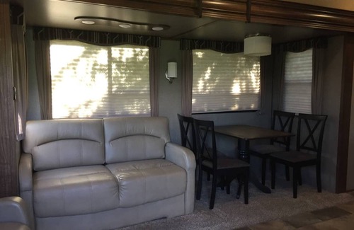 Welcome to our cozy and convenient retreat located just 11.2 miles from the entrance to the Sequoia National Park and Kings Canyon National Park. Our 2016 Keystone 5th Wheel RV Camper is situated on semi-wooded land in the foothills of the Sierra Nevada mountains at an elevation of 3,000 ft, near the awe-inspiring Giant Forest and the famous General Sherman Tree.