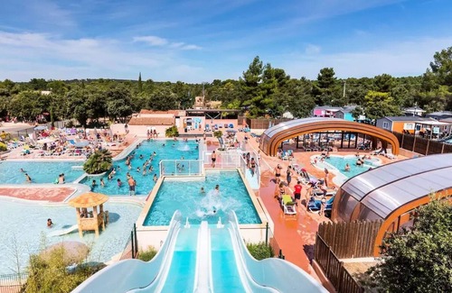 Details: Disabled access : Housing Wi-Fi access : Free Playground for children : Free Family animations : From 01/07/2025 to 31/08/2025 Sports animations : From 01/07/2025 to 31/08/2025 Pets allowed : Authorized dog (excluding 1st and 2nd cat.) - Additional Deposit (in supplement) : On-site tariff and regulation Teen club : 11 - 14 years old (Languages spoken : French) Kids club : 4 - 12 years (Languages spoken : French) Deposit of bread : All season Lake / river distance : 20000 Grocery store : All season Baby Kit : Free Laundromat : Supplement Bedding : Supplement Number of stars : 4 Water park : Open from 11/04/2025 to 14/09/2025 between 09:00 and 20:00, wearing the bracelet obligatory Car park bowling : Free Ping Pong : Free Heated pool : 1 Indoor swimming pool : 1 Near airport : Marseille Provence Airport #MRS (100.9 km), Beau-Côte d'Azur Airport #NCE (118.7 km) Restaurant : All season Snack bar : All season Tourist tax (surcharge) : On-site tariff and regulation Tennis : paying on site Green key Number of bathroom : 1 kettle Coffee maker : Electrical (flret) Cooked Microwave oven Cooking plate : 4 gas lamps Fridge : with freezer Garden Lounge : 1 Surface (m²) : 32 Number of bedrooms : 2 Air conditioner Terrace : Not covered Number of double bed : 1 Number of pieces : 3
