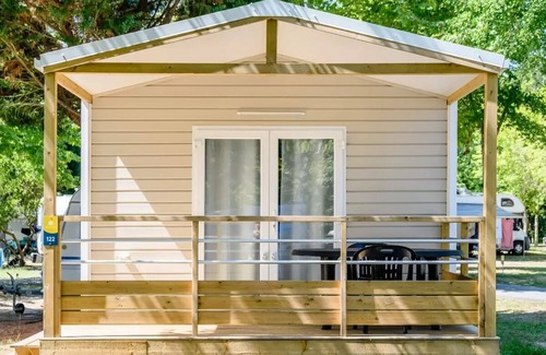 Accommodation: Mobil Home 2 Rooms for 2/4 people, air conditioned, of about 20m2 with :Living area with sofa bed for 2 peopleKitchen corner equipped1 bedroom with 1 double bed (140x190)1 shower room with toilet1 covered terrace of about 8m2Old age: between 5 and 10 yearsNote : The sizes of beds mentioned are non-contractual. It is possible to have slight size differences depending on the rental models. Bed layout and decoration may also vary.