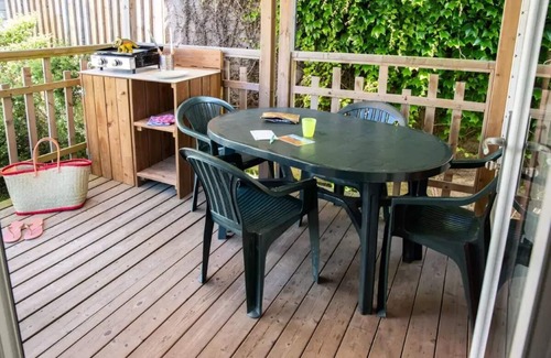 Details: Beach Access : 800 m Disabled access Wi-Fi access : free in the dedicated areas - 1 free connection/family on arrival day - for all others see rates and on-site payment Playground for children Children's animation : Mizzy Club (4/12 years old) - free - from 10am to 12pm in July/August Family animations : free - day and evening - July/August Pets allowed : 6€/ day - 1 single animal/location - vaccine + mandatory tattoo – dogs of 1st and 2nd categories prohibited - to be settled on site Baby bath : €2.50/day - upon reservation and availability - to be paid on site Barbecue : 25€/week - to be paid on site Charging station for electric cars Baby chair : €2.50/day - upon reservation and availability - to be paid on site Grocery store : Bread and pastries Final cleaning fee : 1 bedroom : 55€/locatif - 2 bedrooms : 65€/locatif - 3 bedrooms : 85€/locatif - 4 bedrooms : 95€ - luxury cottage dinos : 120€ - to be paid on site Laundromat : dino wash : 2 washing machines - 1 dryer - 6€/wash (including laundry) - 4€/drying - to be set on site Bedding : 17€/double bed/lounge - 17€/single bed/lounge - sheets are not renewed during the stay - upon reservation and subject to availability - to be paid on site Towels : 12€/kit/stay - towels are not renewed during the stay - upon reservation and subject to availability - to be paid on site Crib : €2.50/day - upon reservation and availability - to be paid on site Mini golf : 6 holes - paid - reserved for camping guests Animation level : 51 Number of stars : 4 Water park : playful swimming pool of 280m2 with paddling pool - 1 multi-track slide - 1 shower under the diplodocus - opening according to weather conditions in free access to opening hours (please consult on site) Car park : 1 vehicle/location (truck and van prohibited) - additional car: 2€/car/day - to be paid on site bowling Ping Pong : 2 tables available ( ready for snowshoes at the campsite / bar ) Indoor swimming pool : heated with hot tub - open from 5/04 until 29/09 included - with free access to opening hours (please consult on site) Environmental charge : 0.40€/day/person - to be paid on site Restaurant : "Abri des Dinos" - snack/bar - open all season Fitness room : new 2024 - 2.50€/hour - to be paid on site Game room : with flipper - babyfoot - Air Hockey - free access Tourist tax (surcharge) : 0.66€/night/adult - to be paid on site Multisports ground : located at the bottom of the campsite, don't forget your balloons! Environmental display Pets Allowed : 6€/ day - 1 single animal/location - vaccine + mandatory tattoo – dogs of 1st and 2nd categories prohibited - to be settled on site Coffee maker : with filters #4 + Malongo Dose Maker (EOH) Deposit (in euros) : 400 Dishwasher Number of bedrooms : 2 Number of double bed : 1 Number of single beds : 2 Number of pieces : 3 Number of toilets : 1 Number of bathroom : 1 Cooking plate Fridge Garden Lounge Surface (m²) : 30 Television Terrace Dishes and cutlery
