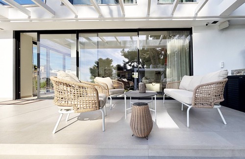 This stunning luxury villa combines exclusive design, comfort and functionality. It has four spacious bedrooms, the master with a private area and a large bathroom, three bathrooms and a toilet with high-quality finishes and three modern bathrooms, all equipped with premium materials. The property has underfloor heating and individual air conditioning for each area of the house, ensuring a pleasant environment at any time of the year.Enjoy unique moments in the spectacular pool with panoramic views of the sea and mountains, ideal for relaxing or enjoying with your guests. For your convenience, towels are included.For food lovers, the villa offers a fully equipped gourmet kitchen with state-of-the-art appliances, an espresso machine, toaster, water heater, and other extras, perfect for enjoying cooking with family and friends.The high-speed fiber optic connection makes this property a perfect place for those who work from home or want to stay connected at all times.The exterior of the villa is equally impressive, with a garden, large terraces for sunbathing, a chill-out area, a rooftop with stunning sea views, a barbecue area, a small gym with training equipment, a punching bag and TRX, a laundry room with a washing machine, dryer and toilet, a shower and an outdoor shower. Private parking for two cars and a garage.Exclusive location: This villa is located in one of the most privileged areas of Malaga, just a few minutes from the beautiful beaches of the coast and the prestigious El Candado golf club, which has 9 holes spread over a 2,300-meter course, ideal for golf lovers. Excellent connection to the city. There are several bus stops nearby, which facilitates access to public transportation and a supermarket in the area.Located in a quiet and residential environment, the property perfectly combines privacy, tranquility and comfort. Furthermore, it is only a ten-minute drive from the historic center of Malaga, where you can enjoy its rich cultural, gastronomic and leisure offer. And just a few minutes from the promenade. An unbeatable location for those seeking quality of life, proximity to the sea and all essential services within reach.Don\'t miss the opportunity to enjoy our wonderful villa. We have prepared it with great care, taking care of every detail so that your vacation in Malaga is unforgettable.