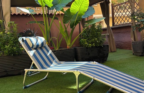 Candelor House consists of TWO spacious bedrooms, one of this with a garden view, a bathroom and a kitchen with access to a large garden featuring a relaxation area and a small gym. You will discover a comfortable and renovated apartment, stylishly furnished with all the necessary amenities for the stay you deserve. It is located 100 meters from the bus stop, which allows you to reach Piazza Venezia, Trastevere, St.