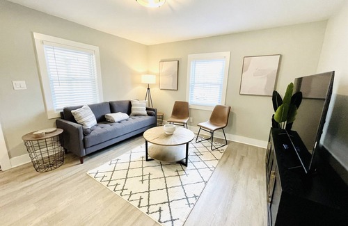 Welcome to Canton Cottage—a sweet and stylish 2-bedroom retreat featuring modern touches and timeless southern charm. With its covered front porch and inviting atmosphere, it’s an ideal stay for event-goers, couples, and weekend travelers alike.
