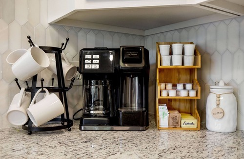 YELLOWSTONE AMENITIES: The well-appointed indoor kitchen provides an oven with a built in airfryer, dishwasher, full size refrigerator, microwave, pantry storage in the laundry room with washer and dryer, and island with counter seating. The gas grill is located just outside of the side entrance to the home adjacent to the kitchen. Enjoy the full coffee bar located in the kitchen. Enjoy the game room in the garage with a tv, ping pong table, darts, life size Connect 4 and life size Jenga. Ample outdoor seating areas offer guests space to comfortably enjoy the sunset (or sunrise for the early birds). Stargaze next to the fire pit which is nestled in the backyard surrounded by outdoor lights. 6 Smart TVs are located in the main living room, bunk room, game room, and all other bedrooms. A crib, highchair, pack-n-play and changing station are also available & located in the primary bedroom closet. Crib linens are available.