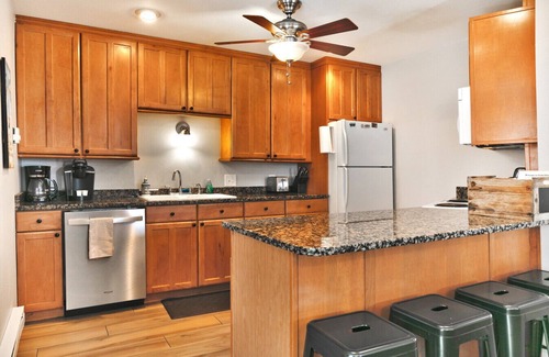 This 2 bedroom, 2 bathroom condo is directly across from the Park City Canyons Village parking gondola. The newly remodeled kitchen has granite countertops and new cabinets. The dining room table is in front of the picture window with a great view of the resort. The living room has large sectional seating with fireplace and cable tv over the mantle.