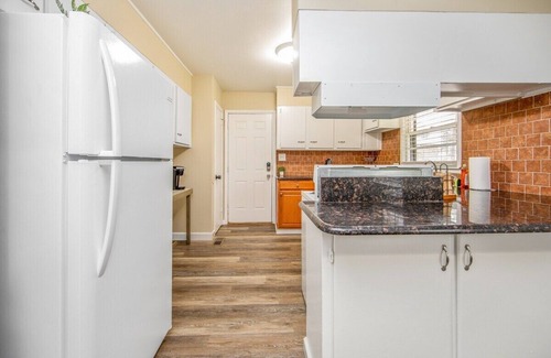 This cozy, one story home features a living room, kitchen, dining room, and a laundry room off the car port. The kitchen includes full sized appliances, basic dining and cookware. You will find three bedrooms, each with a full sized bed. The hallway bathroom includes a tub/shower combo and includes body wash, shampoo and conditioner, makeup remover wipes and fresh linens for each guest.