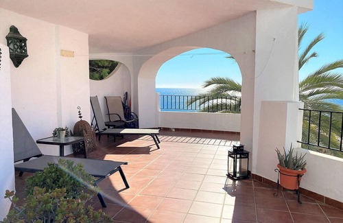 Capistrano Playa is a picturesque urbanization with typical Andalusian style houses surrounding an ornamental lake with plants and fish. It is located on the top of a hill, so it enjoys wonderful views of the sea and Burriana beach from a privileged position. The apartment is a short walk from Burriana Beach, where you can get there by a path and stairs that go through the pretty gardens. The urbanization also has 3 pools of different depths and the entire complex is closed to non-residents. Restaurants and other services are nearby and the center of Nerja is about 20 minutes away on foot, although there is a bus stop on the same street.
