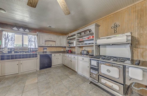 KITCHEN: Cooking basics, refrigerator, microwave, 6-burner gas stove, oven, dishwasher, blender, coffee maker, Crockpot, electric griddle, spices, toaster