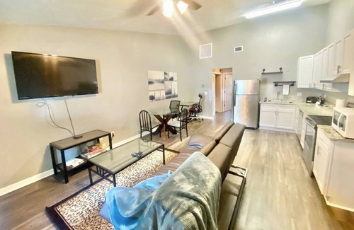 You’ll have everything you need to have a relaxing stay in this well-appointed private townhome including comfortable bedding, large rooms, washer, dryer, fully stocked kitchen, smart thermostat, convenient parking and more. For your entertainment, there's fast WiFi, board games and two 50" smart TVs. There is also a beautiful park you can walk to across the street with 2 miles of shaded nature trails, a dog park and a lake full of turtles!