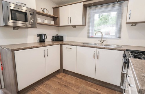 Caravan 96, a single-storey caravan, consists of an open-plan living space with gas oven and hob, microwave, fridge/freezer, dishwasher, washer/dryer, dining seating for four people, Smart TV, and electric fire. The bedrooms consist of a double with en-suite and twin. There is a bathroom with bath, shower over, basin, and WC. You'll find a shop in 2.5 miles and pub in 2.3 miles. WiFi, fuel, power, bed linen, and towels are included in the rent. Outside, there is a garden with patio, lawned area, and furniture. Enclosed decking with furniture and designated off-road parking for one car. Two well-behaved dogs are welcome. Sorry, no smoking. Enjoy a refreshing break with your loved ones at Caravan 96. Note: On-site facilities available. Note: Good housekeeping bond of 250 GBP. Note: there are 3 steps from the parking area up to the decking.
