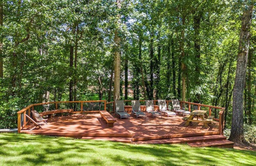 Large deck in the yard between the house and the lake. This is a great place to lay out in the sun!