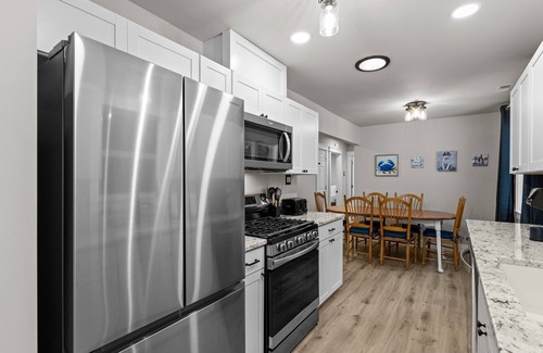Living Room: The heart of Carolina Charm is the bright and airy living room. Featuring a 55-inch TV, this space is ideal for movie nights or catching up on your favorite series. The pull-out sofa offers additional sleeping space, making it perfect for larger groups or families.