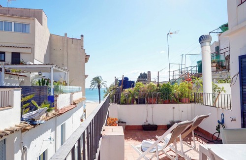 Spectacular and bright penthouse just a few steps from La Fragata Beach in Sitges, with a beautiful terrace .