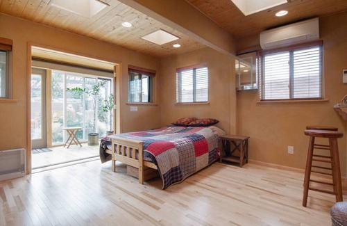 The entrance to casita is off San Felipe Street, which is the corner of Otowi and San Felipe. GPS will take you to the front of the house. But please do not come to the front of the house. All you need to do is to go around the corner on San Felipe. You will see "casa Alegre" sign next to the sliding gate. Please SLIDE the gate manually sideways to open and park your car inside the property by the garden gate. Disregard the keypad on the wall by the gate. Please close the gate all the way once you are in or out and lock the gate latch for the night. That is your responsibility for your safety. The sunroom door will be unlocked at all times (ignore the key box), when you are not there but you can always lock it from inside when you are in. Your key code for casita door is: “Yale3369^" to open, and “Yale” to close.