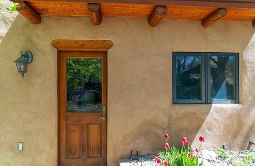 Come enjoy this unique & historic adobe building with three bedrooms and three bathrooms to comfortably accommodate 7 guests. Located on the South East side of Taos gives you easy access to Angel Fire, so you have two options on where to Ski or Mountain Bike! It is expertly designed with local touches as well as modern amenities! .
