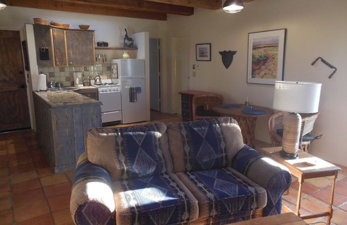 This charming and private casita is perfect for one - three guests. It's a short walk (three blocks to the downtown Plaza) with on site parking. It has been totally remodeled and renovated by me with new windows, bath and kitchen complete re do.