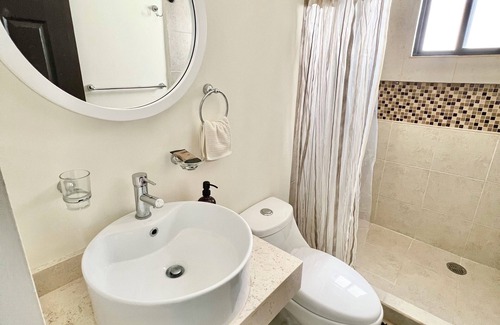 Nuestra casa cuenta con 3 habitaciones amplias y luminosas, diseñadas para brindar el máximo confort durante tu estancia. La habitación principal cuenta con una cama tamaño queen, baño privado y un amplio vestidor. Las habitaciones adicionales ofrecen igualmente camas cómodas y armarios para tu comodidad.
