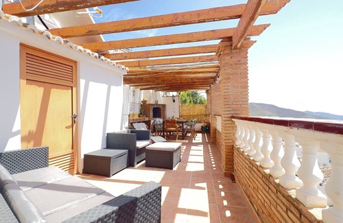 There's a public pool with a restaurant located at the edge of the village (10-15 minute walk from the flat) where you can enjoy tapas on the tree-shaded patio. Excellent base to explore nearby locations such as Nerja, Malaga or Granada. 30 min to the beach at Torre del Mar. Great for active travelers due to the uphill location (and stairs in the flat). Huge terrace overlooking the town center and across to the mountains and the Mediterranean Sea.